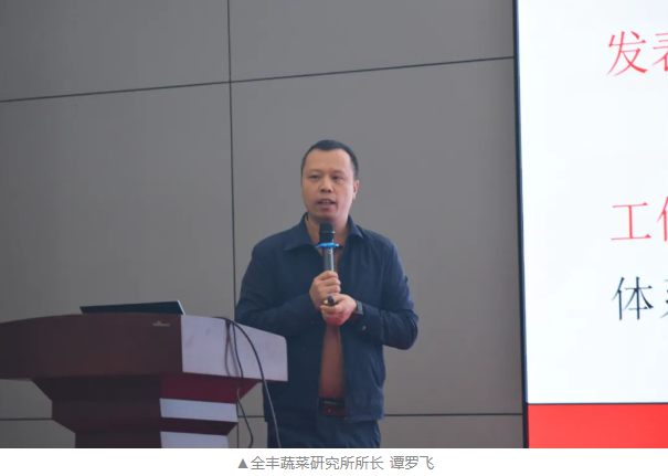 全豐蔬菜研究所所長譚羅飛以《辣椒高產管理技術》為主題,從辣椒生育周期、品種特性及常見問題切入,深入剖析了促根壯苗、控旺促花、保果提質等關鍵環節的技術要點。他指出:“全豐方案通過‘促根-控苗-保果-促轉色’全鏈條管理,可顯著增加有效分枝數、提升坐果率,最終實現產量與品質雙突破?!爆F場展示的多組對比數據與田間實拍效果圖,引發與會者熱烈討論。